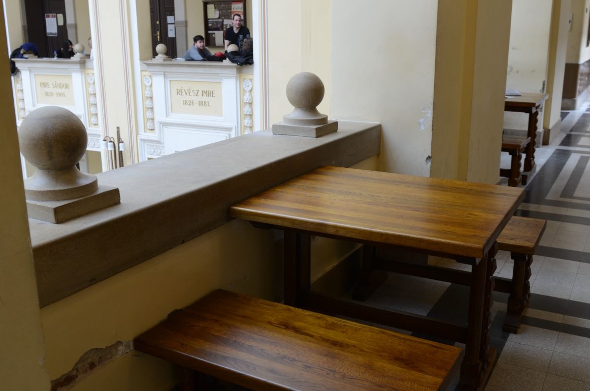 Az adományt szeptember közepén kapta meg az egyetem. Az összegből tizenkét tölgyfa bútorszettet vásárolt az intézmény. A két padból és egy asztalból álló együttesek a Főépületben lévő mára már ikonikussá vált darabok mintájára készültek. Az új bútorok a második emelet folyosóin és a kerengőben kaptak helyet. Régi társaikat szétosztották olyan területeken, ahol eddig nem volt ülő alkalmatosság.