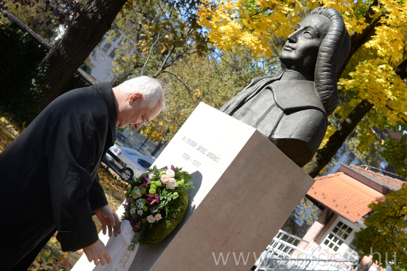 – A pozsonyi evangélikus Segner család egyháztörténeti jelentőségű, ezért fontos, hogy a református Debrecenbe küldték fiúkat tanulni – hangsúlyozta Fekete Károly, a Tiszántúli Református Egyházkerület püspöke. – Descartes felszabadította a gondolkodást és szinte szállóige lett: „cogito ergo sum” – „gondolkodom, tehát vagyok”. Ma inkább a „dubito ergo sum” – „kételkedem, tehát vagyok” világát éljük. A gondolkodás vissza tudott vinni a Biblia Istenéig, még a természettudományban is. Ma viszont a kétkedés még önmagunktól is távol visz és kétségekbe kerget, és hitetlenségbe hajszol. Emlékezzünk helyesen gondolkodva a nagy találmányok és felfedezések polihisztorára, Segner János András professzorra, emlékezete legyen áldott köztünk – zárta beszédét a püspök.