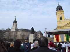 Hagyományosan az országzászló felvonásával kezdődött a debreceni megemlékezés, majd a Petőfi szobornál folytatódott az ünnepség.
