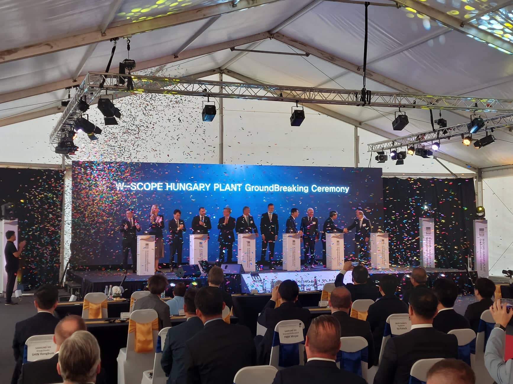 A minisztérium közleménye szerint a tárcavezető arról számolt be az alapkőletételi ünnepségen, hogy a dél-koreai W-Scope hazánkban nyitja meg az első európai üzemét, amelyben évente 1,2 milliárd négyzetméternyi elektromos autók akkumulátorához használt szeparátorfilmet fognak előállítani és ezzel 1200 új munkahely jön létre Nyíregyházán. Hozzátette: a beruházáshoz nyújtott állami támogatás mértékét az Európai Bizottság előtt zajló notifikációs folyamat lezárását követően hozzák majd nyilvánosságra.