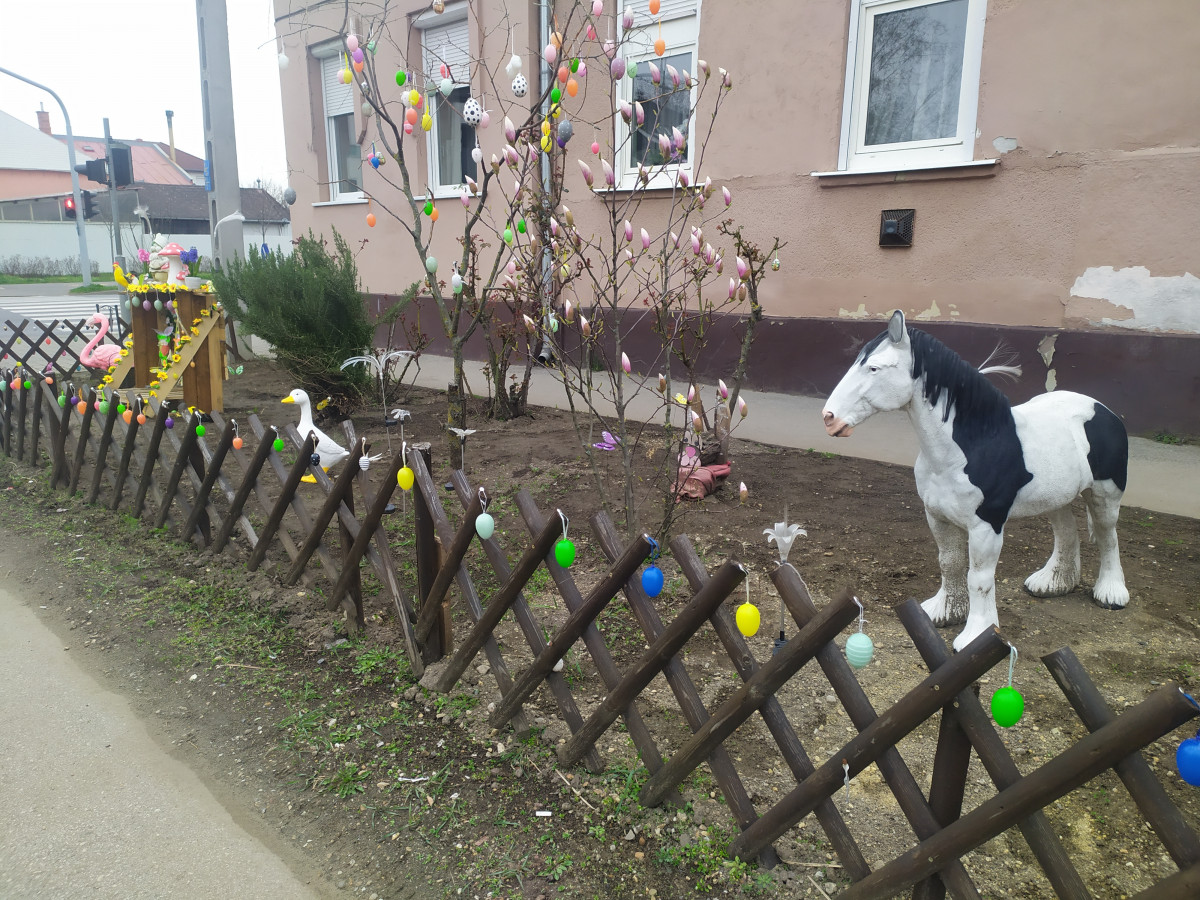 Az egyik nyíregyházi lakóház előtti kertben egy igazi kis csodát alakítottak ki húsvét közeledtével.