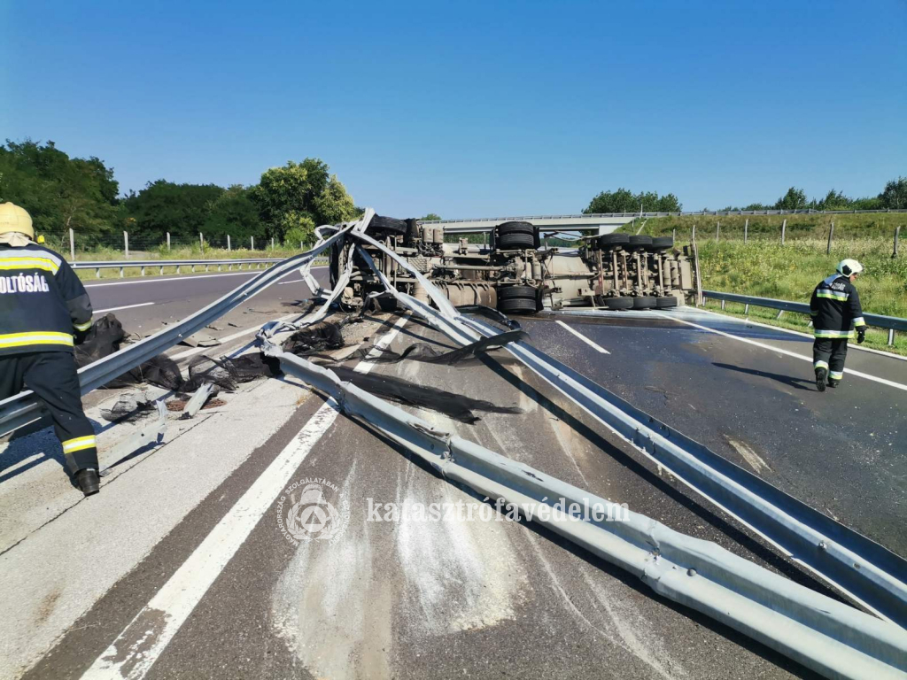 Szalagkorlátnak ütközött, majd az oldalára borult egy tejszállító kamion hétfő délután az M3-as autópálya 245-ös kilométerszelvényénél, Nagykálló és Ófehértó között. – közölte a Szabolcs-Szatmár-Bereg Vármegyei Katasztrófavédelmi Igazgatóság.