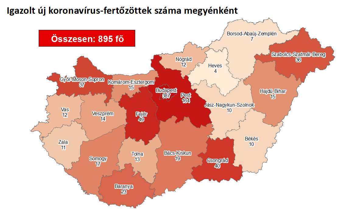 Meghalt 11 beteg, és 895-re emelkedett az azonosított koronavírus-fertőzöttek száma Magyarországon – írta a koronavirus.gov.hu szerda reggel.