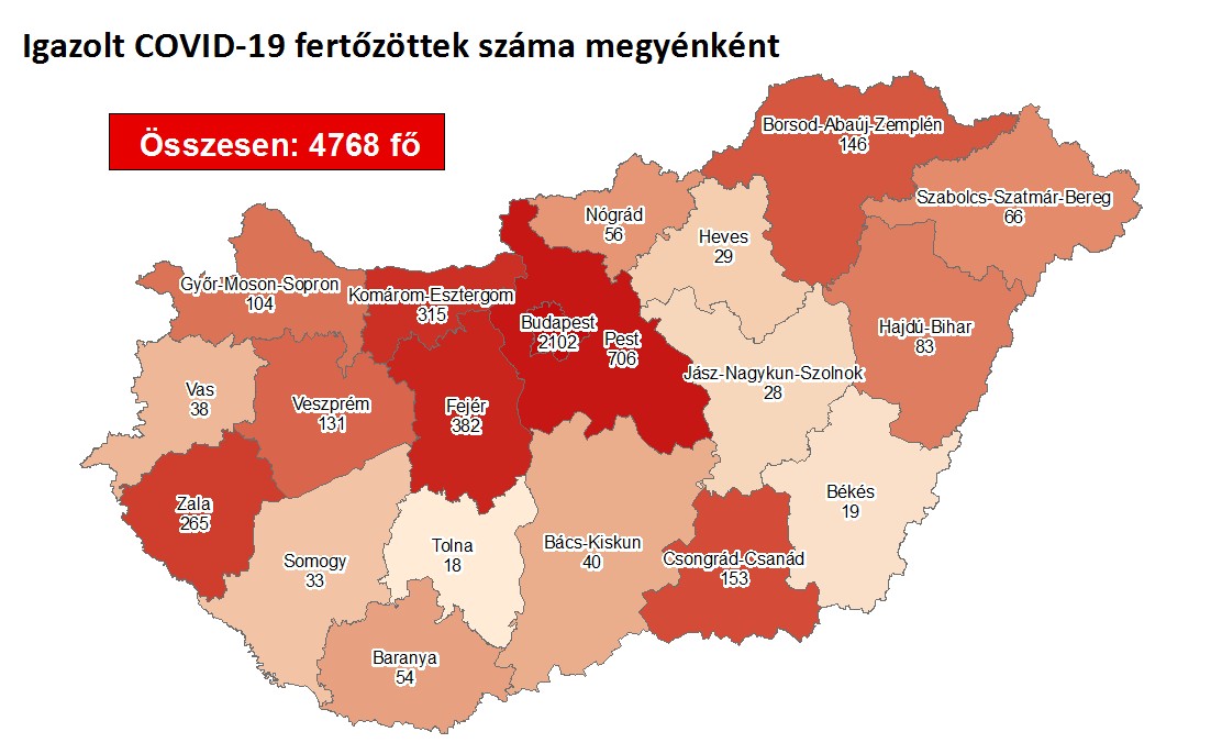 A térkép a 2020. augusztus 12-ei járványadatokat mutatja.