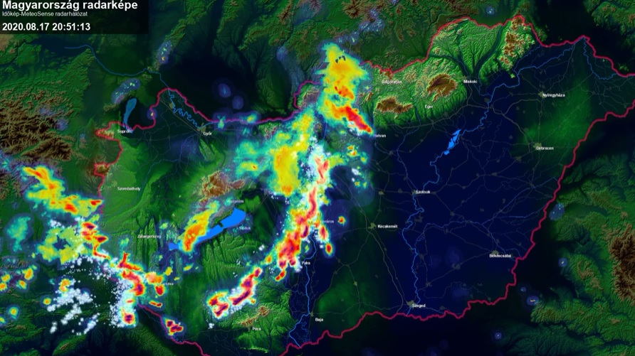 Az Időkép radarján követhető, ahogyan a zivatarok kelet felé haladnak, országszerte narancssárga és citromsárga veszélyjelzés van érvényben: