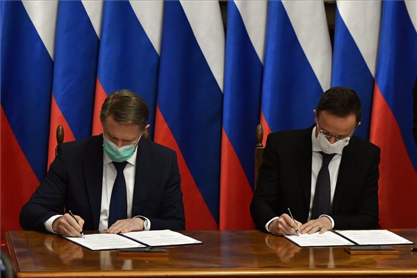 Szijjártó Péter, aki Mihail Murasko orosz egészségügyi miniszterrel egyeztetett, közös sajtótájékoztatójukon köszönetet mondott az orosz kormánynak, hogy Európában elsőként Magyarországnak biztosította a vakcina mintáját.