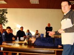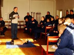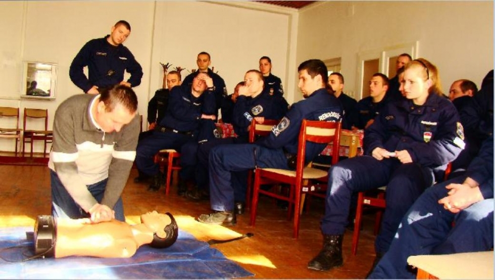 A mentőápoló bemutatta a stabil oldalfekvést, valamint tájékoztatást adott a mérgezéses állapot tüneteiről. Az állomány megismerkedhetett továbbá a vérző sebek elsődleges ellátásával, a helyszíni állapotfelméréssel és az eszméletlen személyek újraélesztésének gyakorlatával.
