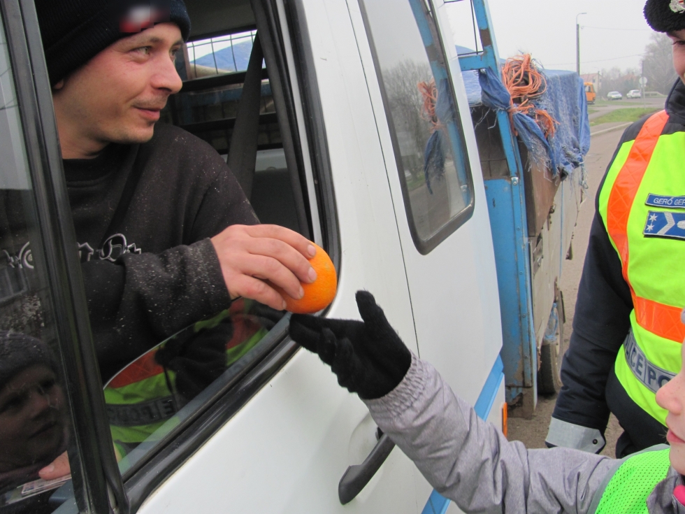 A kis “segédek” az igazoltatás végeztével a sofőröket a további biztonságos közlekedéshez elengedhetetlenül hasznos információkkal látták el.