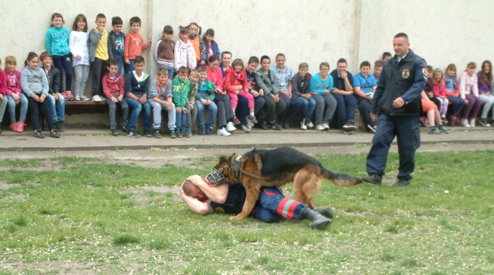 Az igazgatónő kérte fel a helyi rendőröket, hogy szervezzenek programokat a gyerekeknek az iskola napján. A rendezvényen Pálfi Lajos r. főtörzszászlós, konyári körzeti megbízott és Lukács Péter, a Hajdú Speciális Kutató-mentő Egyesület vezetője bemutatták kutyáikat a diákoknak. A tanulók megismerkedhettek a mentőkutya és szolgálati eb bomba- és kábítószer-kereséssel kapcsolatos tudásával.