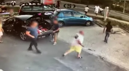 Az enyingi család tagjai négy kocsival beálltak a benzinkútra, majd az ötödik gépkocsi vezetője egy másik behajtón nagy sebességgel szintén odahajtott és szándékosan elütötte a másik család egyik tagját. A kocsi tolatás közben maga alá gyűrt egy másik férfit. Ezután a két család percekig verekedett, a magukkal vitt ütő- és szúróeszközöket is használták egymás ellen.