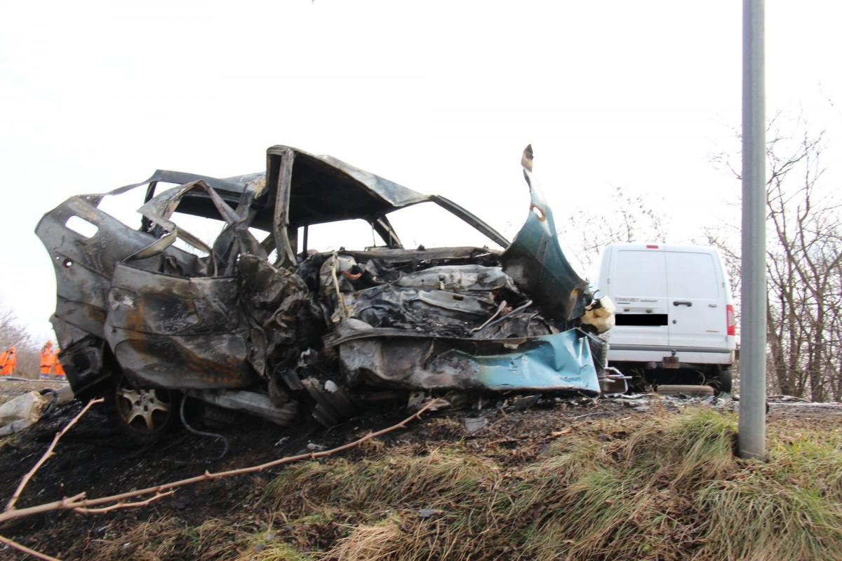 Eddig tisztázatlan körülmények között egy Nyíregyháza felől közlekedő személygépkocsi áttért a menetirány szerinti bal oldalra, és összeütközött a szemből közlekedő kisteherautóval. Az egyik autó kigyulladt. A baleset következtében a személygépkocsit vezető 31 éves férfi és a kisteherautó 39 éves férfi sofőrje és 21 éves férfi utasa olyan súlyos sérüléseket szenvedtek, hogy a helyszínen életüket vesztették.