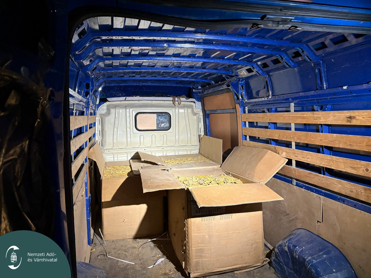 A furgont és a nagy mennyiségű dohánylevelet, hatósági tanú jelenlétében lefoglalták, majd egyenesen a NAV bűnjelraktárába kerültek.