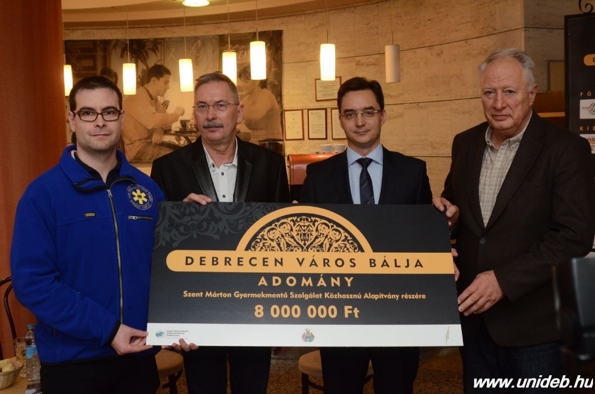 A nyolcmillió forintos csekket Szima Sándor, a debreceni gyermekmentő szolgálat orvosi vezetője vette át, aki a szervezőknek és a debreceni polgároknak is köszönetet mondott az adományokért.