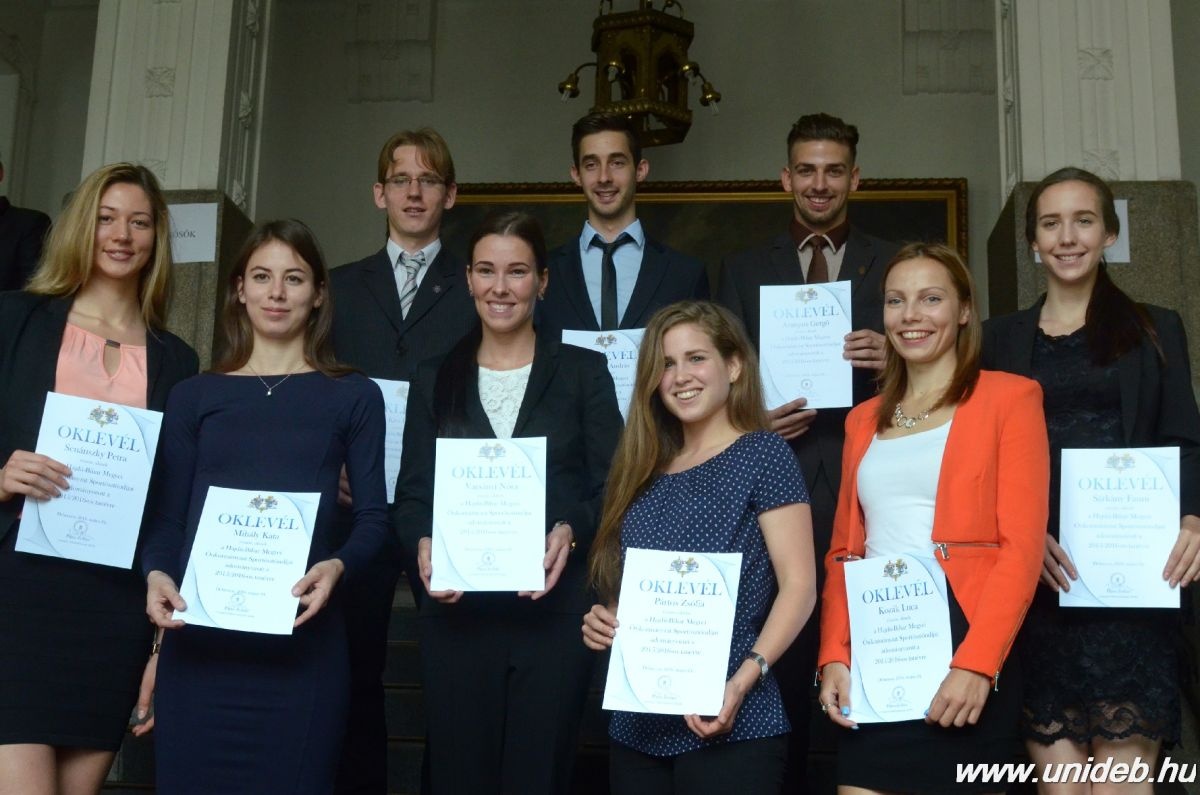 A 15 éve működő támogatási rendszer azokat a fiatal egyetemista sportolókat segíti, akik a megyében igazolt versenyzők, és tanulmányi eredményük is kiemelkedő. A Megyeházán rendezett május 24-ei ünnepségen 10 tehetséges fiatal – közülük kilenc a Debreceni Egyetem hallgatója – vehette át a 2015/16-os tanévre szóló támogatást jelképező oklevelet.