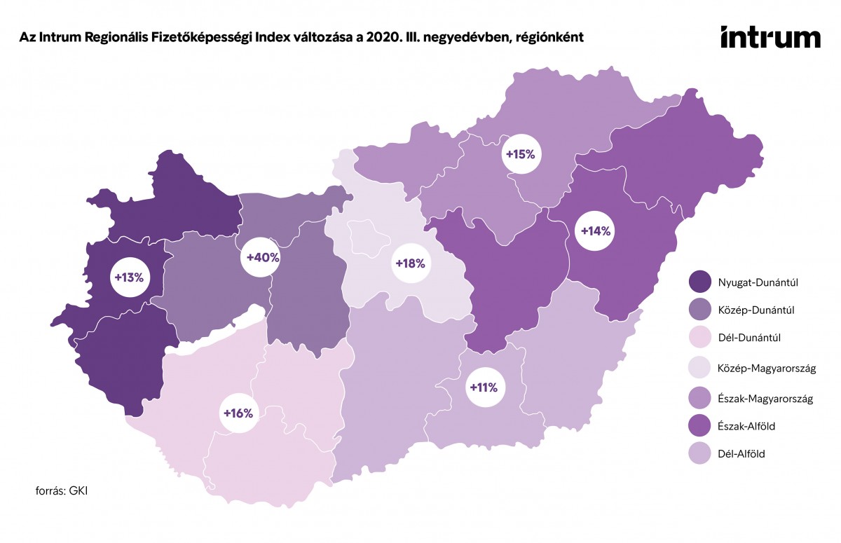 Az Intrum és a GKI Regionális Fizetőképességi Indexe alapján a Nyugat-Dunántúl eddig a járvány és a recesszió legnagyobb kárvallottja, itt romlott leginkább a háztartások pénzügyi helyzete, amin a gazdaság nyári újranyitása sem segített sokat. A Balaton környéki és budapesti lakosok helyzete sokat javult a harmadik negyedévben, a keleti megyéket továbbra is kíméli a válság a többi régióhoz képest.
