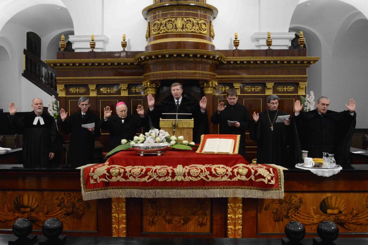 “A Nagytemplom adott otthont az ökumenikus imahét záró alkalmának 2015. január 25-én, vasárnap. A gyülekezetet Fekete Károly, a Tiszántúli Református Egyházkerület 2015. január 24-én beiktatott püspöke köszöntötte.