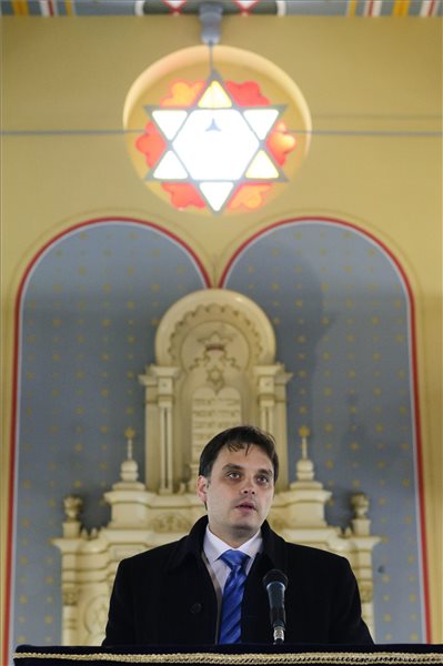 Latorcai Csaba, a Miniszterelnökség kiemelt társadalmi ügyekért felelős helyettes államtitkára beszél a debreceni Pásti utca zsinagógában tartott sajtótájékoztatón 2015. február 10-én. Hamarosan befejeződik az épület felújítása. MTI, fotó: Czeglédi Zsolt