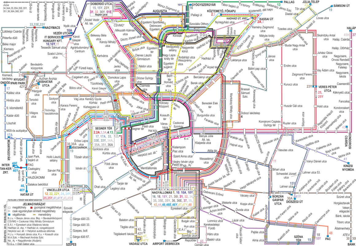 A német Meiningen, az angliai London, a texasi Brownsville és az oregoni Josephine megye buszhálózata mellett előkelő helyen szerepel Debrecen közlekedési hálózatának térképe is.
