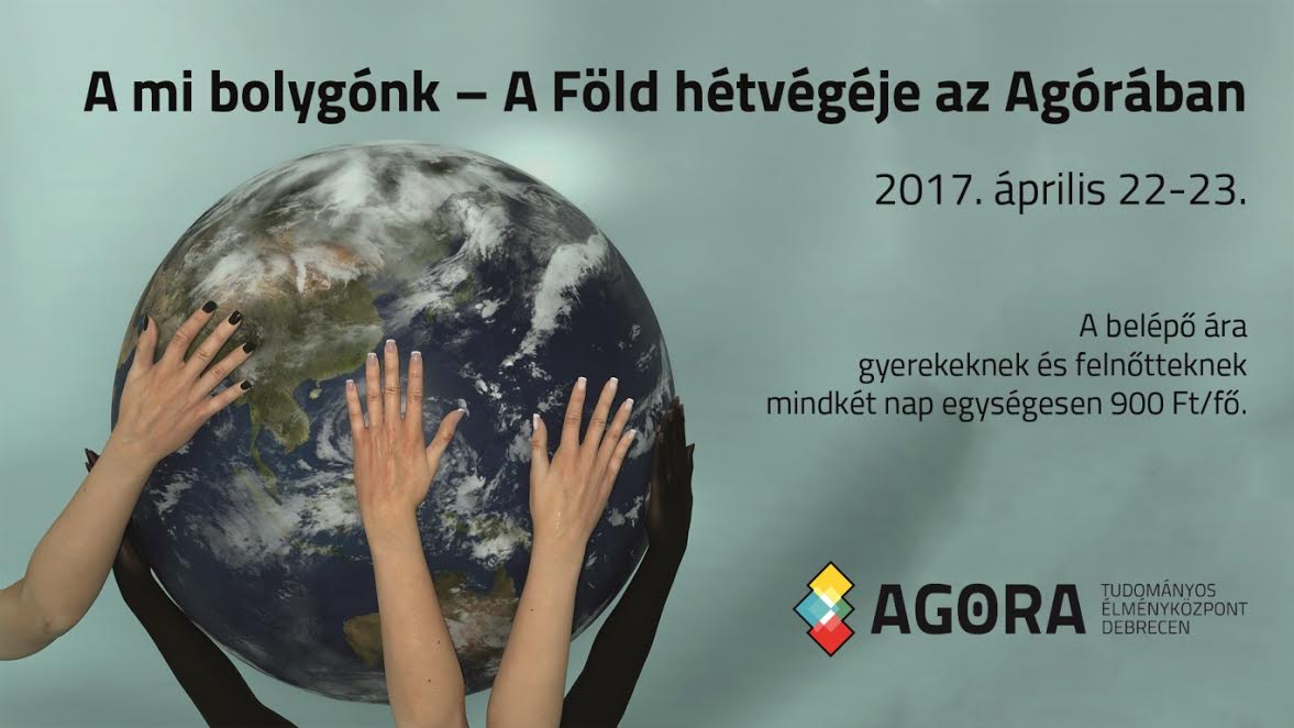 Az Agóra hétvégi tematikus programja is a Föld napjához kapcsolódik. Az érdeklődők megtudhatják, miben különbözik az ózon az életadó oxigéntől, hogyan működnek a szélerőművek vagy azt, hány csillagot számlálhatunk meg éjszaka egy mesterséges megvilágítástól mentes területen. A környezettudományi előadások mellett játékos feladatok mutatnak rá arra, hogy mi mit tudunk tenni a Föld megóvásáért. Számot adhatnak a látogatók arról, tudják-e, hány év alatt bomlik le például egy műanyag flakon, vagy ki tudják-e alakítani Európa domborzati térképét a Homokozó 2.0 segítségével.  Az Agóra Tudományos Élményközpont április 22-én, szombaton és 23-án, vasárnap kedvezményes jeggyel látogatható. A belépő ára gyerekeknek és felnőtteknek mindkét nap egységesen 900 Ft/fő.