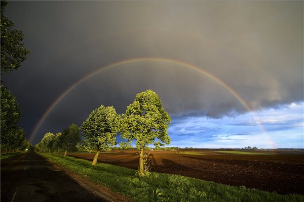 Fotó: Szivárvány Hajdúböszörmény közelében 2017. április 23-án. MTI / Czeglédi Zsolt