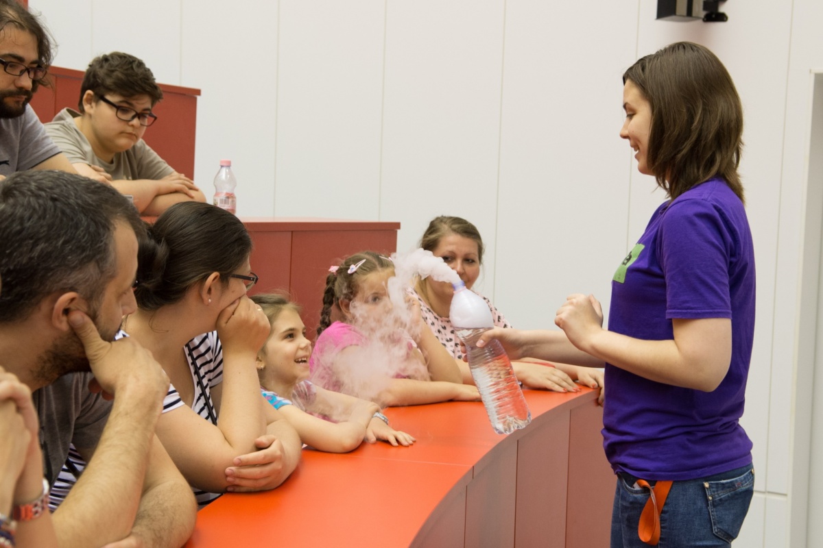 az élményközpontban naponta többször különböző ismeretterjesztő előadások és kísérleti