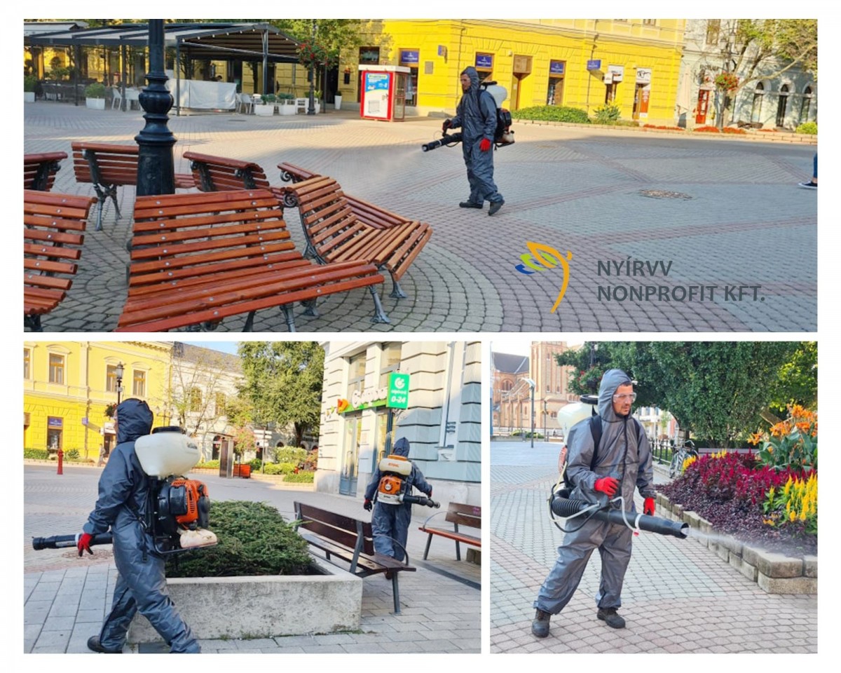 A Nyírvv Nonprofit Kft. rendszeresen fertőtleníti Nyíregyháza város közterületeit a COVID-19 járvány miatt.