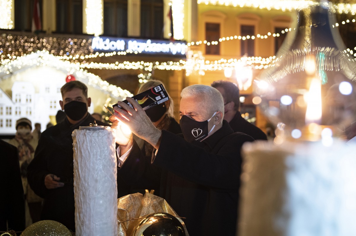 December 20-án vasárnap dr. Kovács Ferenc polgármester meggyújtotta a negyedik gyertyát is a Kossuth tér adventi koszorúján.