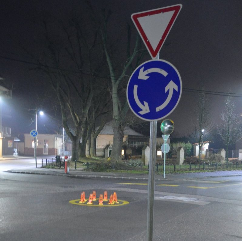Más városokban, országokban előszeretettel használják ezt a lehetőséget, ha nem akarnak rendes körforgalmat kiépíteni, mégis kissé furcsán hat a kisvárdai kereszteződés az újítással. A fotót az egyik Facebook csoportban tették közzé.