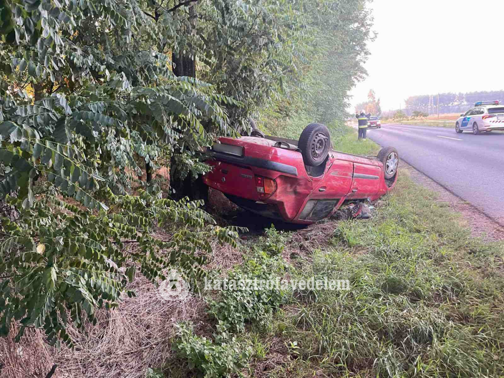 Lesodródott a 4108-as útról, majd árokban, a tetején állt meg egy személygépkocsi. A kisvárdai hivatásos tűzoltók kerekeire állították, majd áramtalanították a járművet.