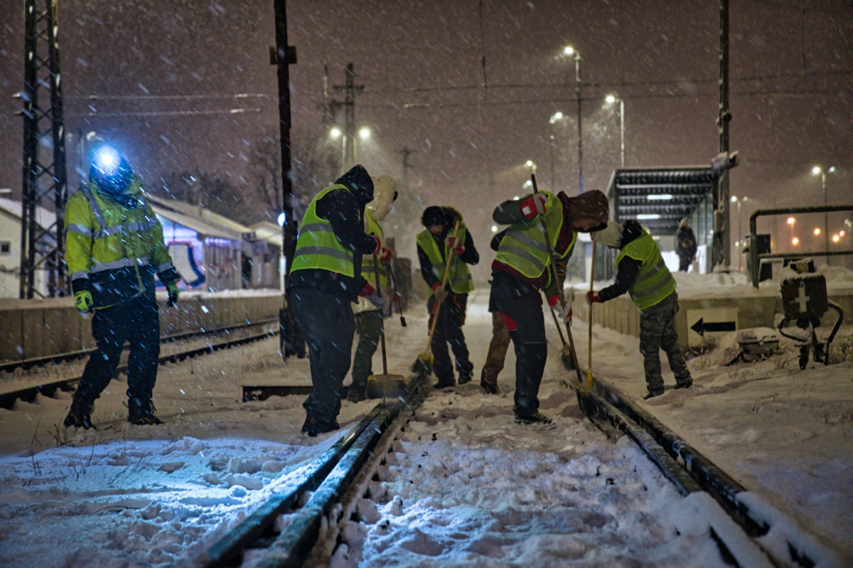 Az éjszakai havazás ellenére a vasútvonalakon beindult a közlekedés, azonban több vonalon váltóállítási probléma nehezíti a forgalmat, emiatt hosszabb menetidőre lehet számítani – közölte a MÁV szerdán reggel.