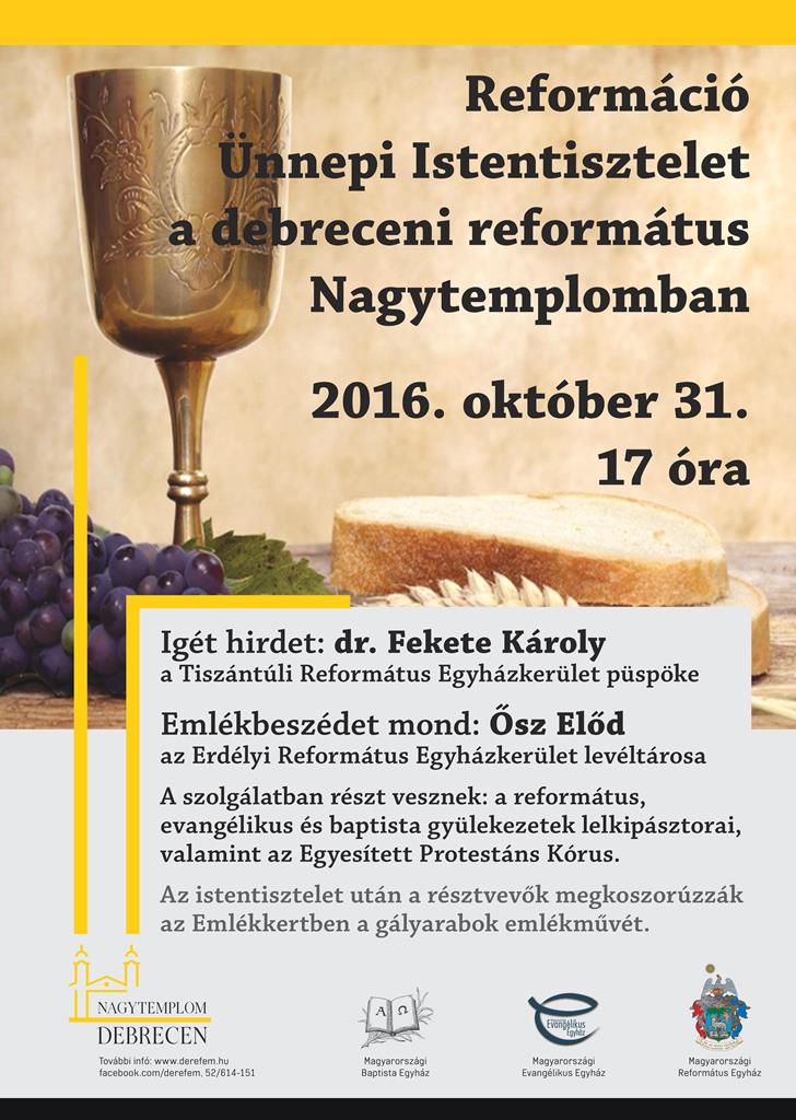 Reformációs istentisztelet lesz a Nagytemplomban Kultúra október 30, 2016Szabolcs SzilágyiSzóljon hozzá a Reformációs istentisztelet lesz a Nagytemplomban bejegyzéshez 2016. október 31-én Dr. Fekete Károly hirdeti az igét.