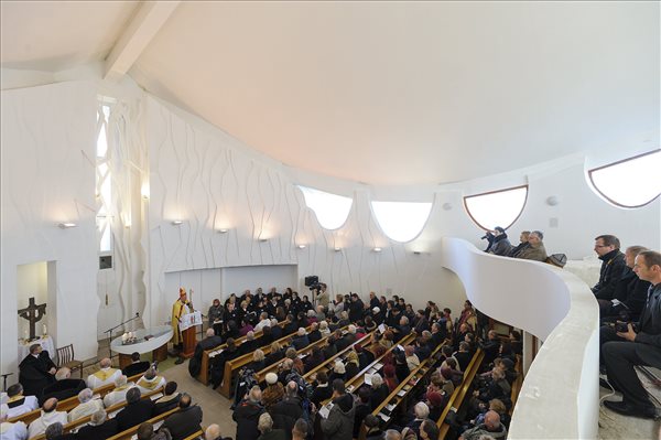 Palánki Ferenc, a debrecen-nyíregyházi római katolikus egyházmegye püspöke (b) az új Hortobágyi Ökumenikus Templom felszentelésén 2016. december 3-án. MTI Fotó: Czeglédi Zsolt