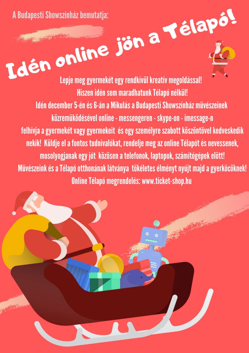 Az Online Télapó a Budapesti Showszínház jegyoldalán, a www.ticket-shop.hu oldalon keresztül “rendelhető meg”.