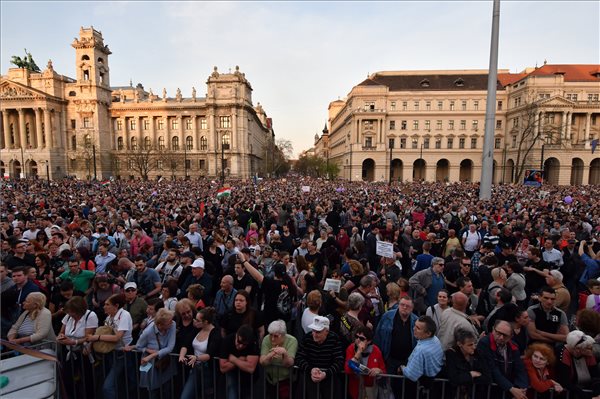 Tízezrek tüntettek Budapesten a pártatlan közmédiáért és a szavazatok újraszámlálásáért