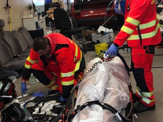 Autószerelő műhelyből alakítottak ki rögtönzött kórházat a mentősök