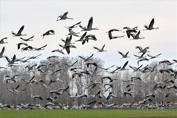 Szürke darvak tavaszi vonulása teszi mozgalmassá az égboltot