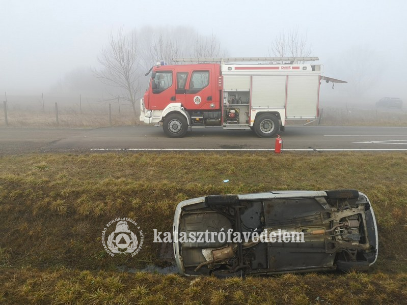 A 38-as számú főút 35-ös kilométerszelvényénél, Nyíregyháza térségében árokba csapódott egy személygépkocsi pénteken.