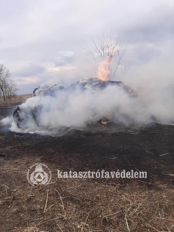 Gégényben, a Gábor Áron utcában körbálák égtek kedden.