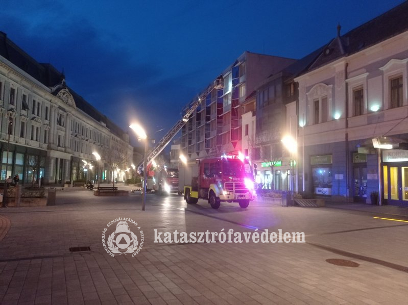 Nyíregyházi, belvárosi épület homlokzati dekorációját megbontotta az erős szél, ami veszélyt jelentett a járókelőkre hétfőn. A szabolcsi megyeszékhely hivatásos tűzoltói létrás jármű segítségével távolították el a lógó részeket.