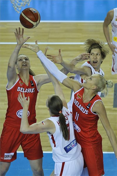 A cseh válogatott Alena Hanusová utolsó pillanatban értékesített hárompontosával nyert a fehérorosz csapat ellen a magyar-román közös rendezésű női kosárlabda Európa-bajnokság debreceni középdöntős csoportjában.