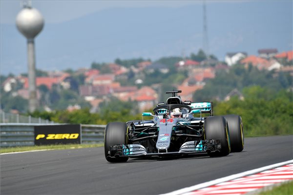 A címvédő és négyszeres világbajnok Lewis Hamilton, a Mercedes brit pilótája nyerte a 33. Forma-1-es Magyar Nagydíj szombati időmérő edzését, amelyet zuhogó esőben rendeztek meg a Hungaroringen.