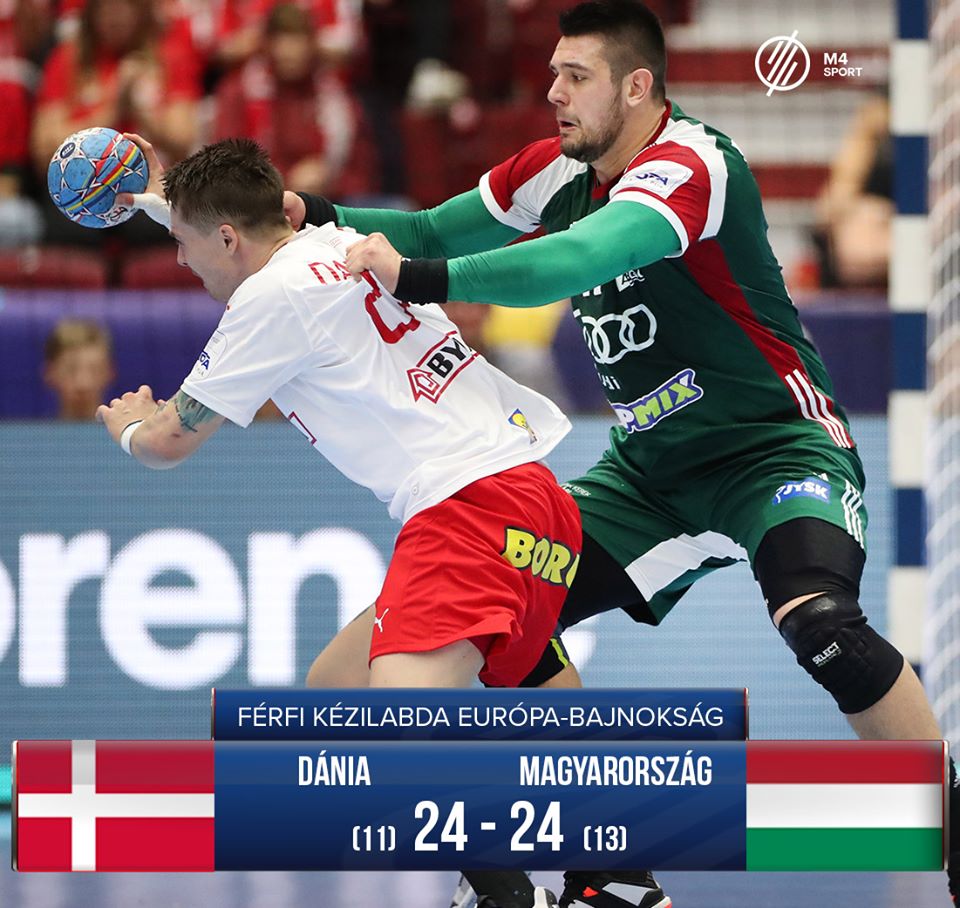 A magyar férfi kézilabda-válogatott 24-24-es döntetlent játszott hétfőn az olimpiai és világbajnok dán csapattal az olimpiai kvalifikációs férfi kézilabda Európa-bajnokság csoportkörének második fordulójában, Malmőben.