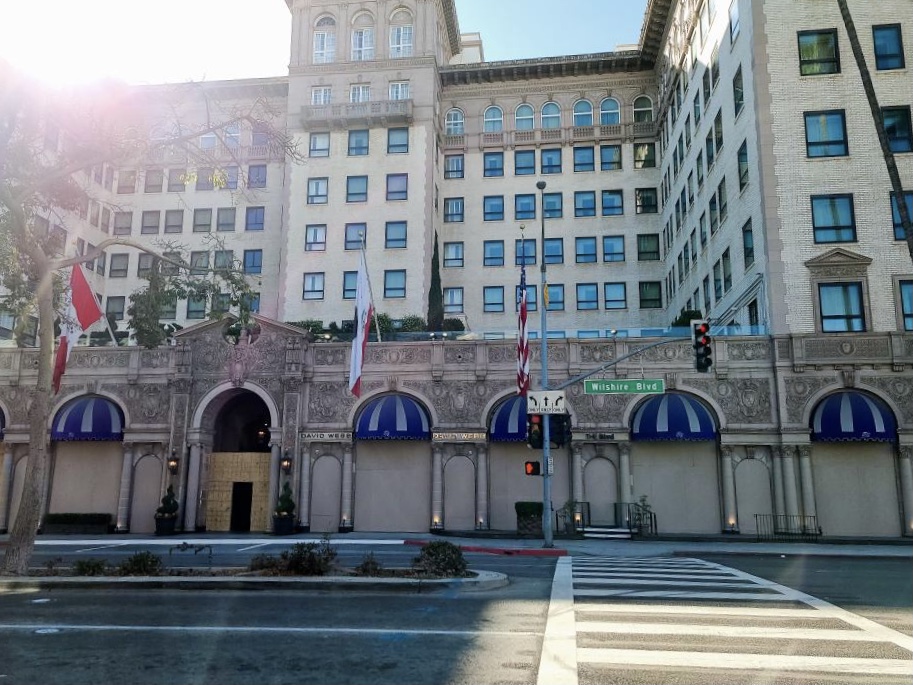 Üres utcák, bedeszkázott kirakatok a híres Rodeo Drivon és környékén Beverly Hillsben. Felkészültek a mai választásra és a várható megmozdulásokra.